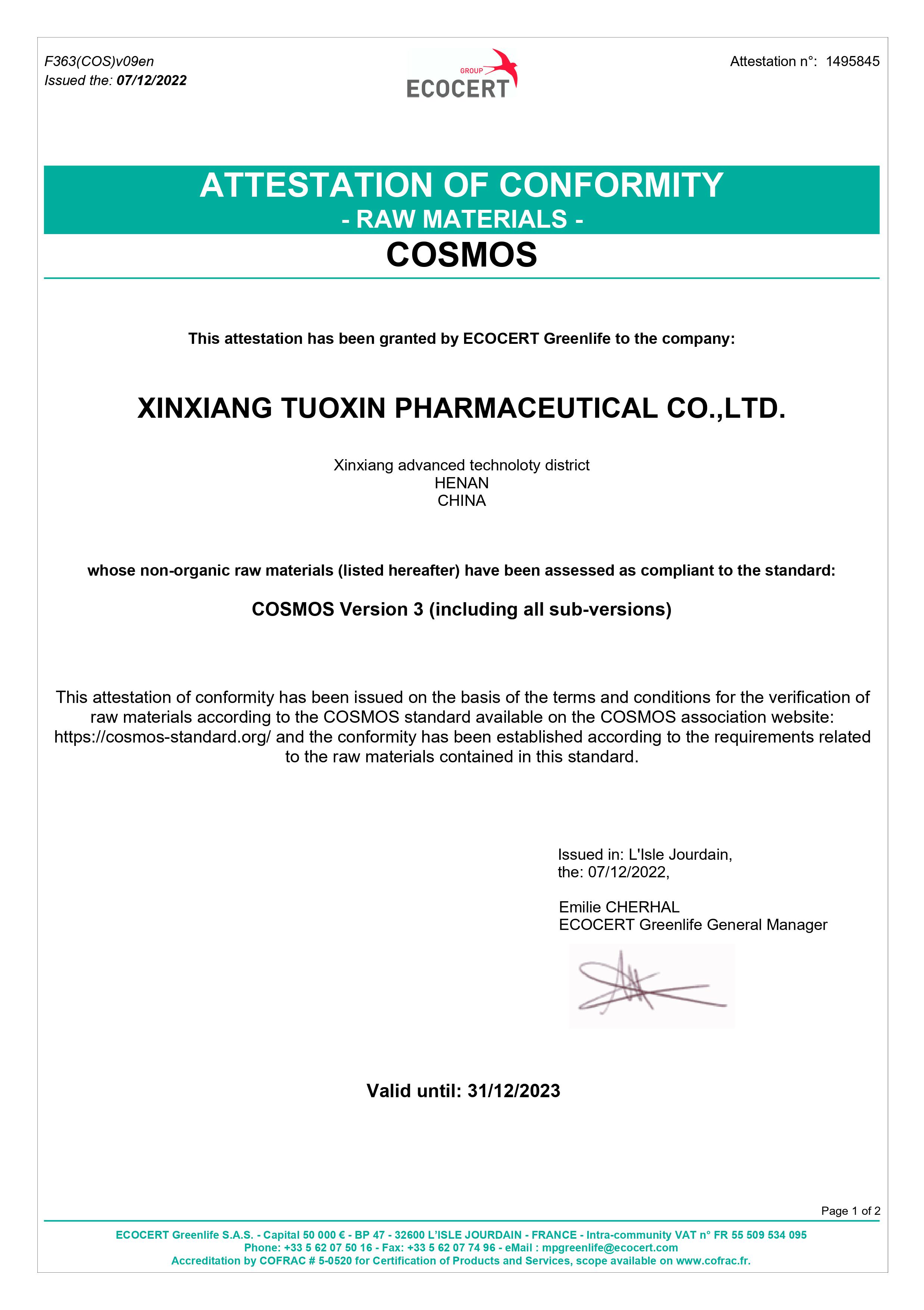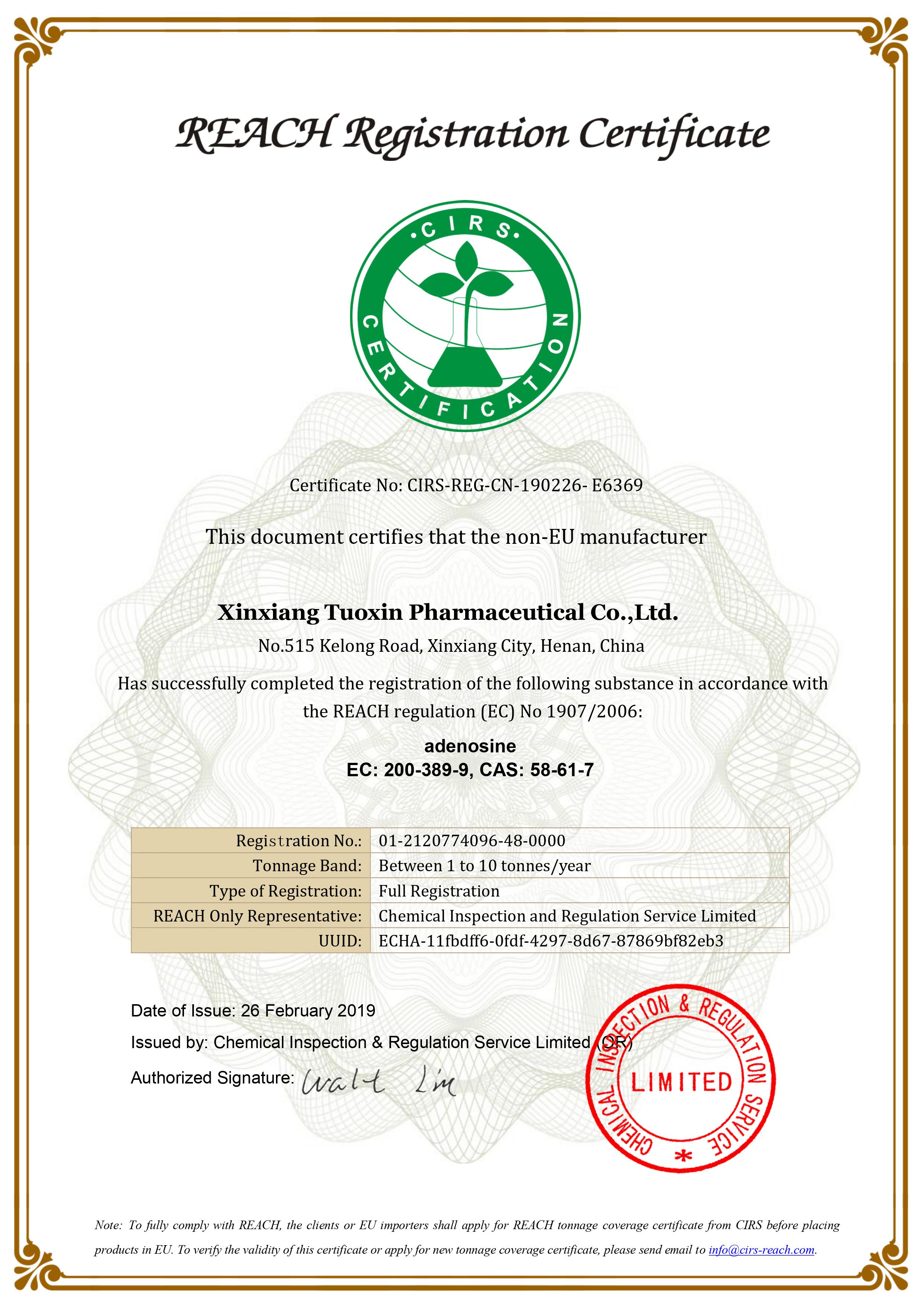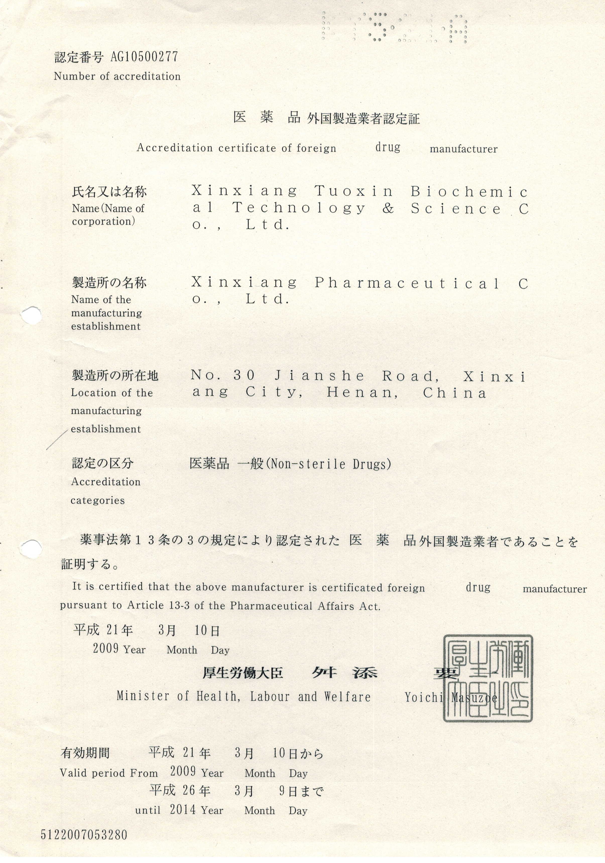集團積極進行各類產品的國內外認證和注冊工作,多個子公司產品通過了印度、烏茲別克斯坦DMF認證,多個醫藥中間體產品通過了日本、歐盟等國家和地區的官方認證,如歐盟REACH注冊證書、HALAL清真認證和KOSHER潔?認證等。